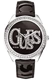 ++ Guess - Montre GUESS femme bracelet cuir noir strass fond noir -